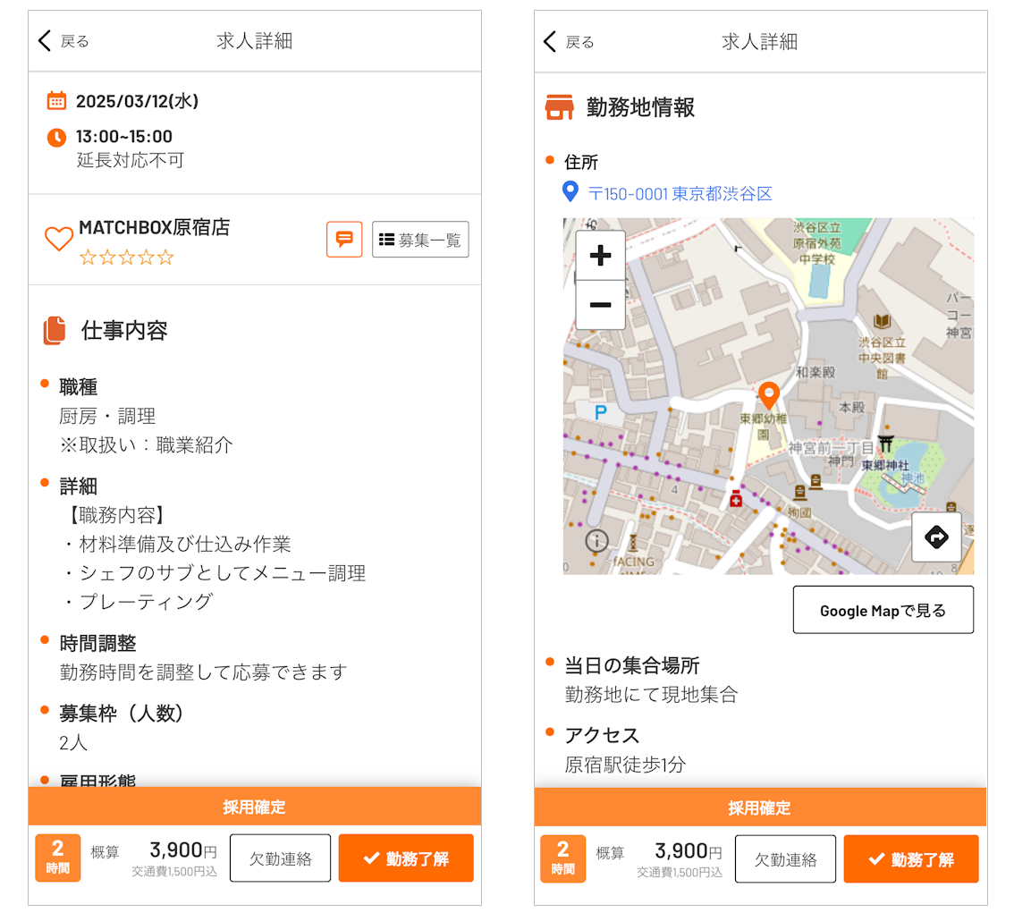 - 勤務地/集合場所