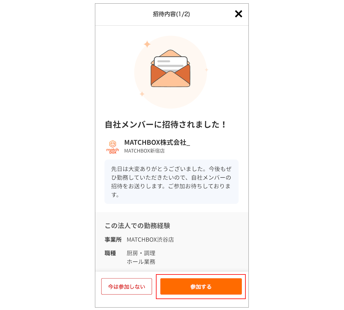 ※「今は参加しない」を押した場合は招待が取消され、復元できません。