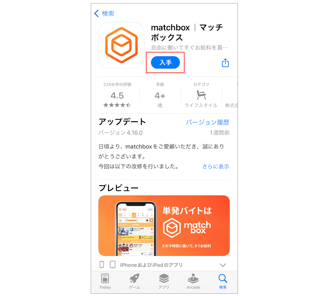 ①アプリストアで「matchbox」と検索し、アプリをダウンロード