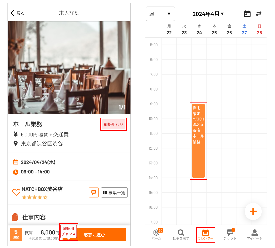 ※勤務状況によっては、即採用されない場合があります。応募後、カレンダーで「採用確定」と表示されているかご確認ください。
